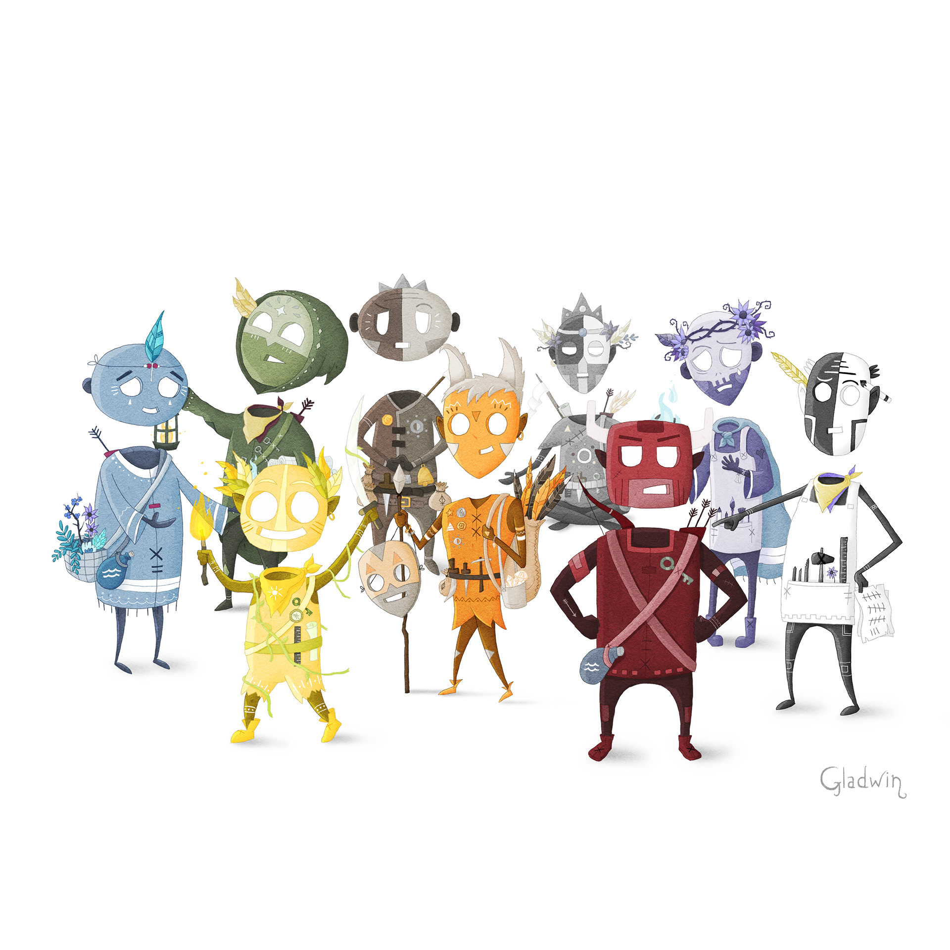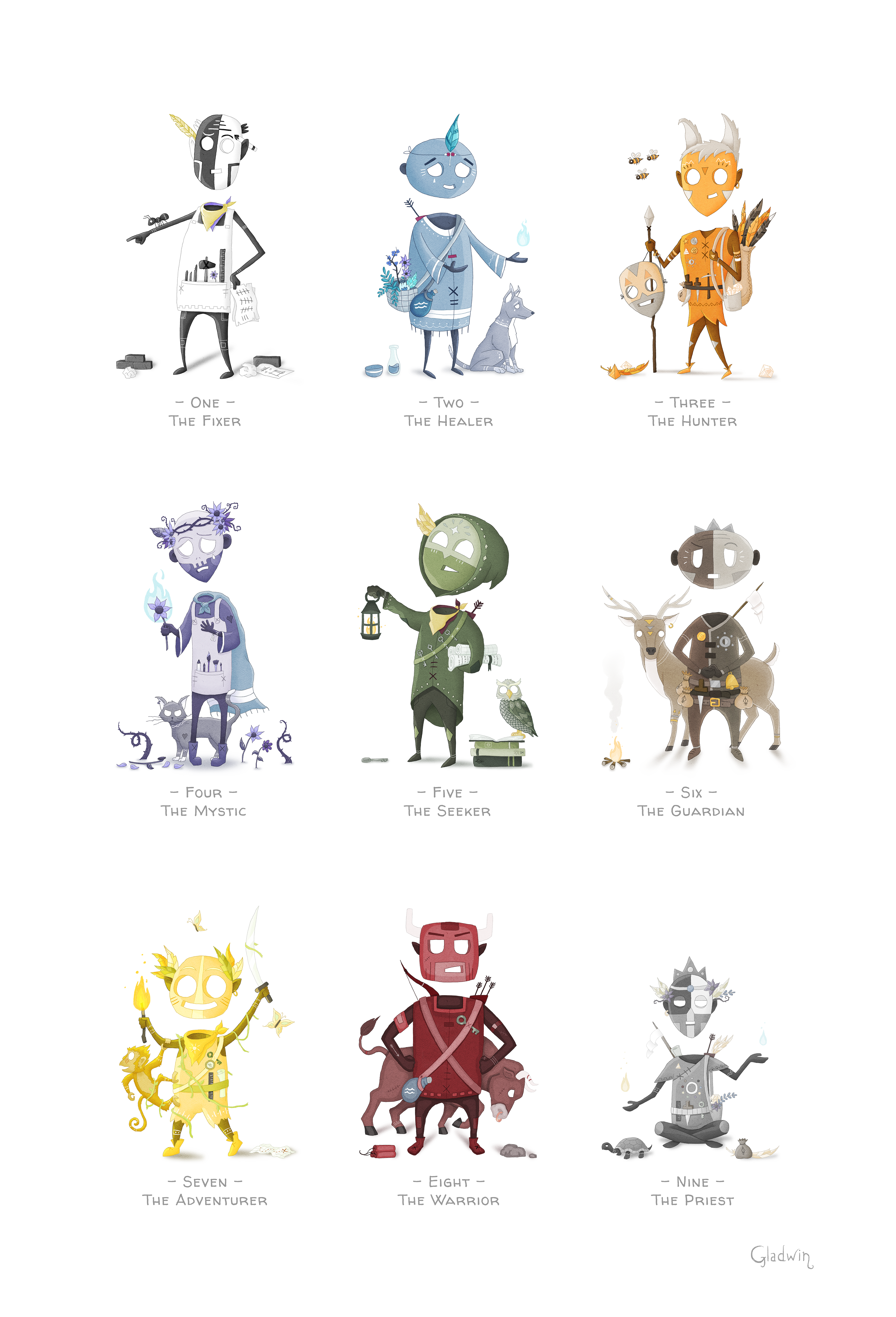 Illustrated character design series inspired by the nine Enneagram personality types.